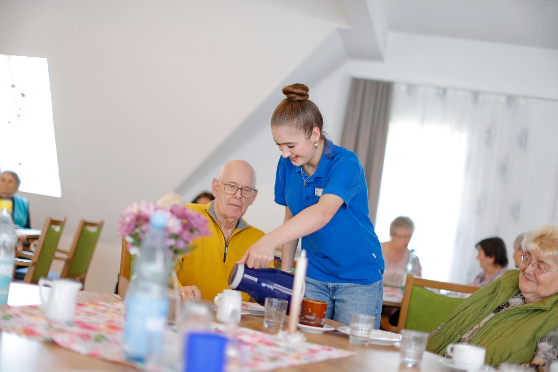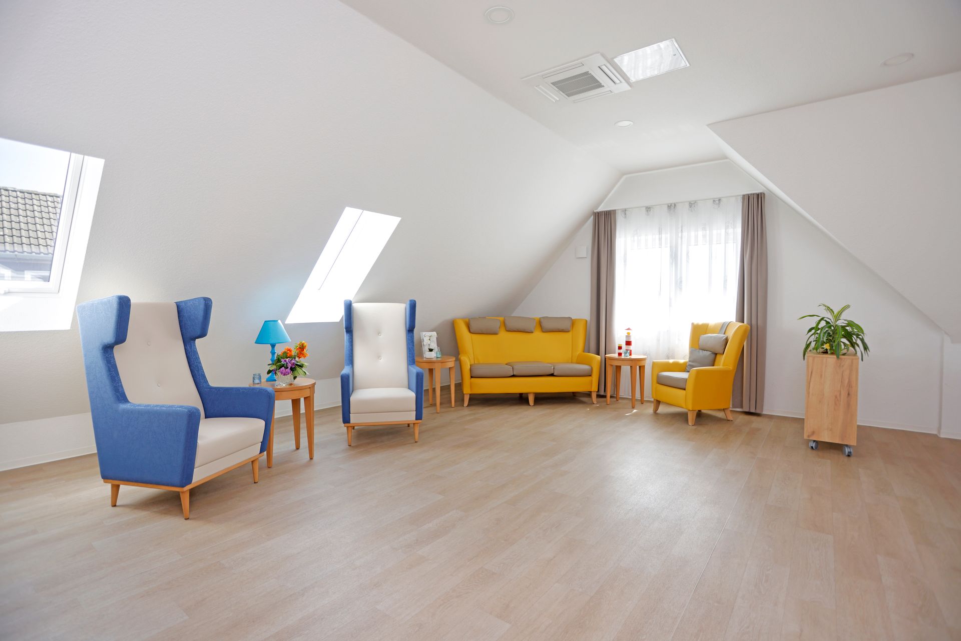 Im Staffelgeschoss mit herrlichem Blick über die Nachbarschaft ist Diepholz höchstgelegene Tagespflege mit 25 Plätzen beheimatet. Hier geben wir Menschen einen Tagesstruktur und damit die Möglichkeit, länger im eigenen zuhause wohnen zu können. Ein engagiertes und kreatives Team kümmert sich von Montag bis Freitag um Tagesangebote, das leibliche Wohl, Ausflüge und ein gutes Miteinander.